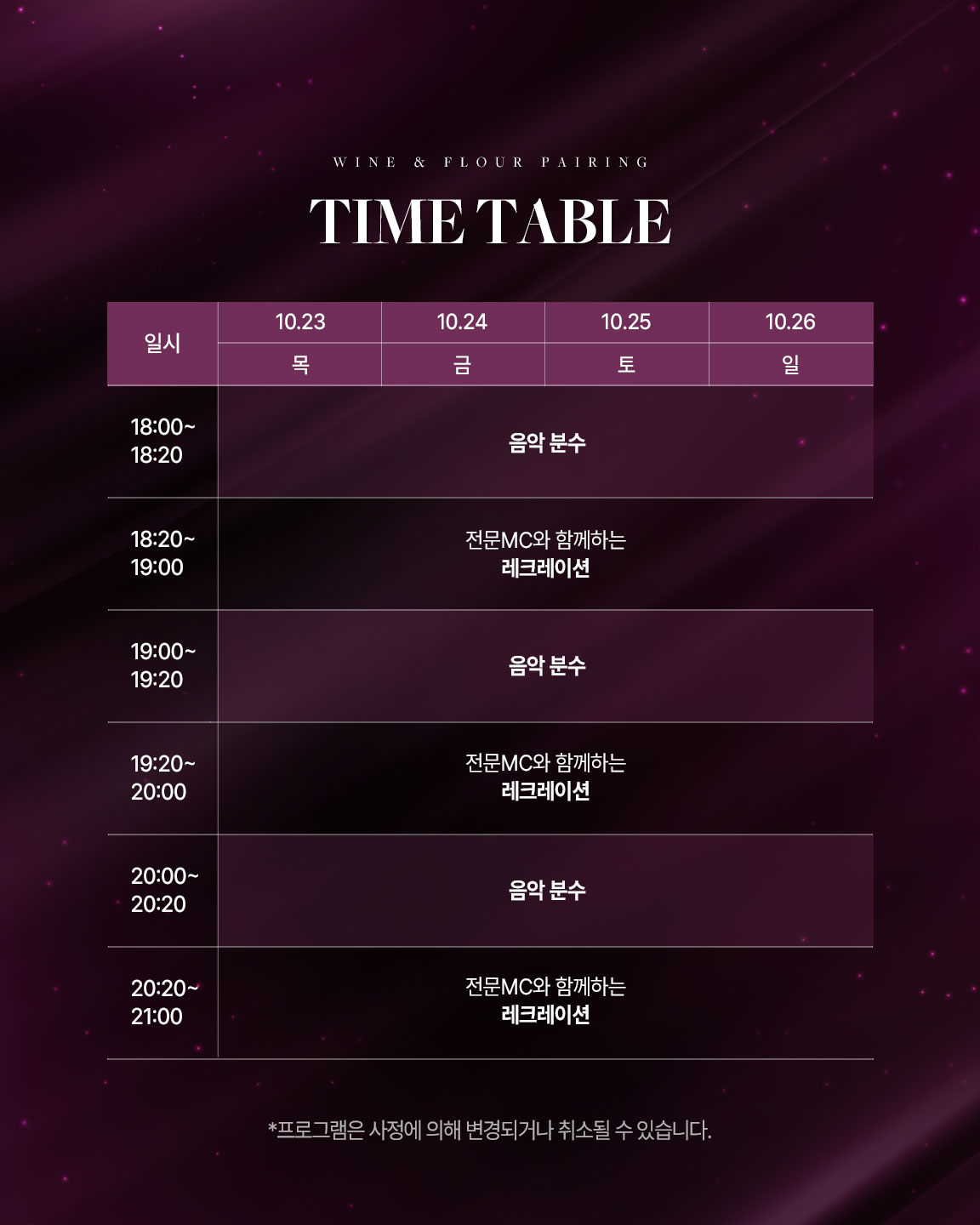 프로그램 한눈에 보기 문의하기 와인페스티벌 페이스북 와인페스티벌 인스타그램 페이지 최상단으로 이동