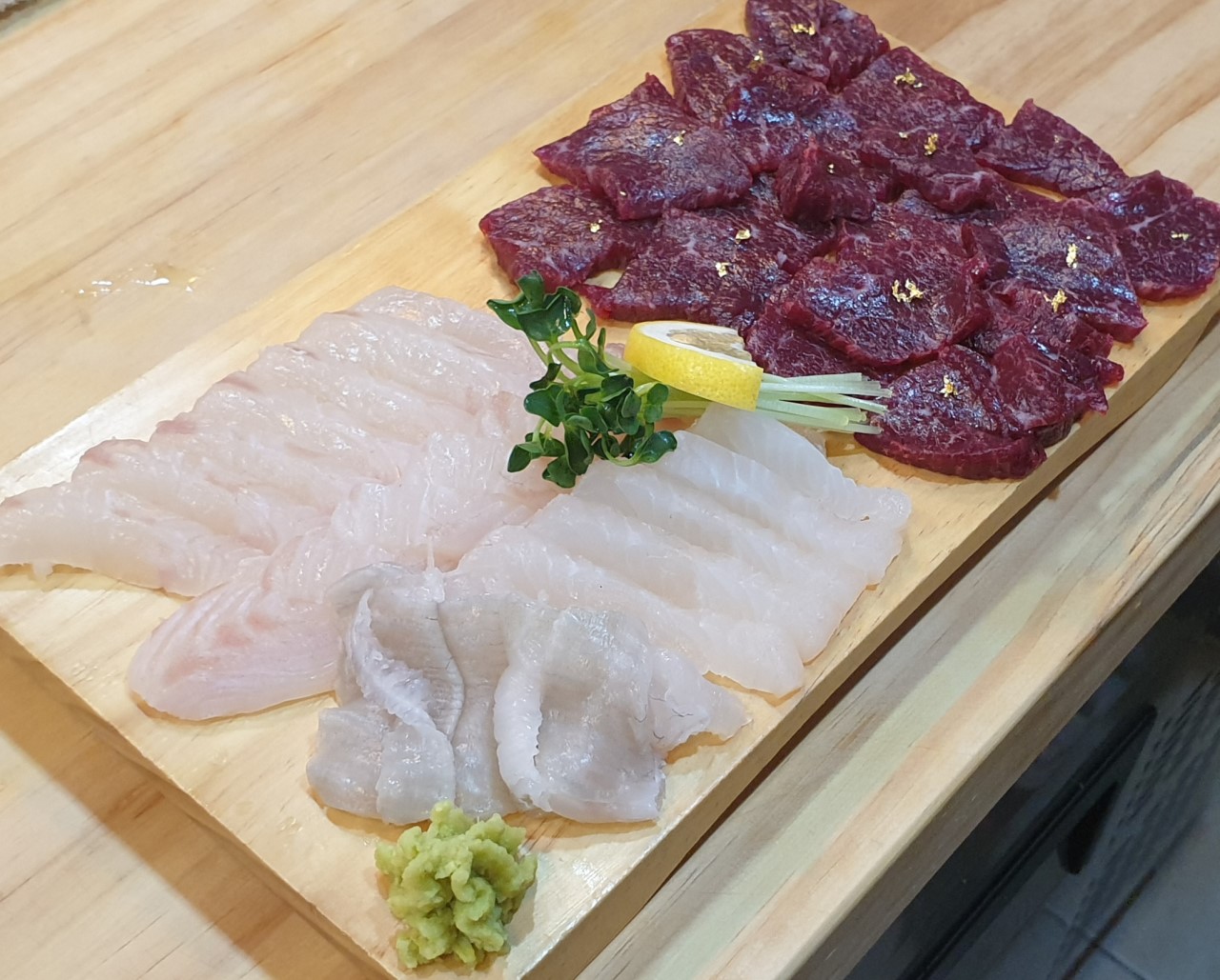 대표메뉴로는 간장새우를 비롯,당일도축한 소의 우둔살을 24시간 안에 섭취하는 대구,경북지역의 육사시미인 일명 뭉티기, 경북 영천식 육회,하루한정 숙성광어,비타민D가 풍부한 생연어회가 준비되어 있습니다.